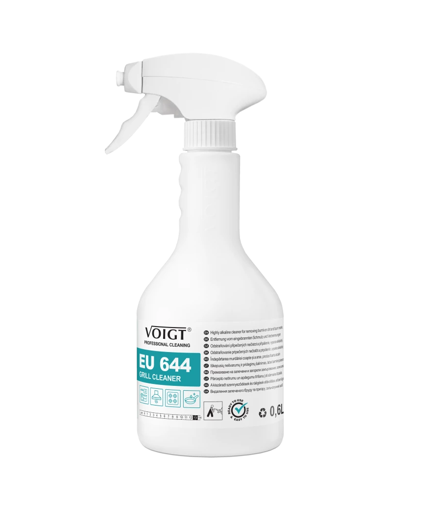 Profesionalus grilių ir orkaičių valiklis Voigt H644. Itin stipri, paruošta naudoti putų konsistencijos priemonė įsisenėjusioms ir sunkiai pašalinamoms apnašoms valyti. Ypač efektyvi, nuvalo riebalinės kilmės apnašas ir purvą. Aktyvaus veikimo putos išlieka ilgą laiką ir padeda efektyviai išvalyti grilius, krosneles, iešmus, groteles, dujines bei elektrines virykles, židinių stiklus. Tinka emaliuotiems paviršiams, veikia ir žemoje temperatūroje.