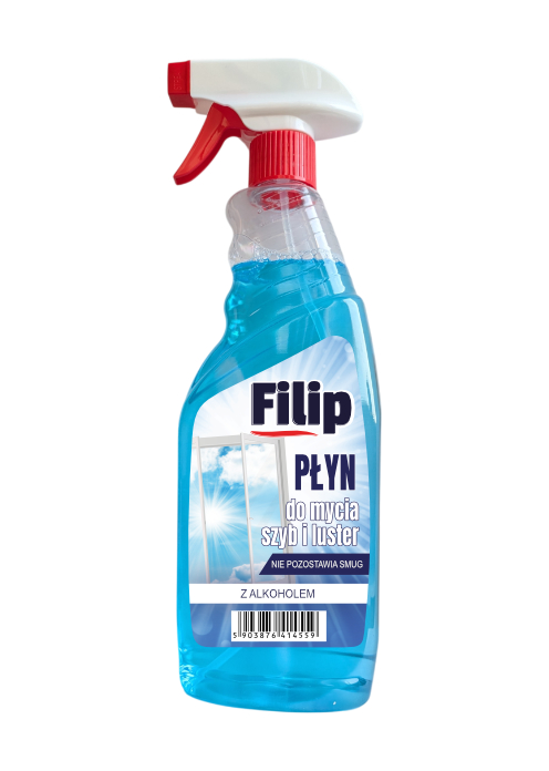 Skystis skirtas langų, veidrodžių ir kitų stiklo paviršių valymui FILIP. Nepalieka dryžių.
